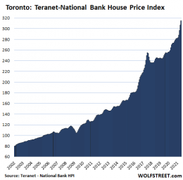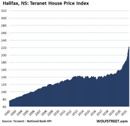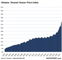 In Ottawa, house prices jumped 4.0% for the month (48% annualized!) and 25.8% year-on-year. But wait, that insane 4.0% increase in June was down from the frightening and insane 4.9% (59% annualized) increase in May: