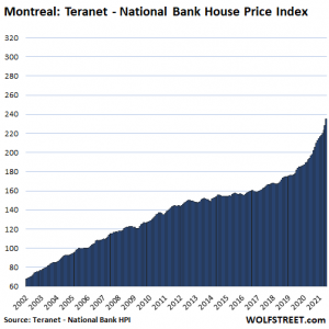 To Montreal, house prices jumped 2.8% for the month and 19.4% year-on-year: