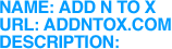 USING AN ARSENAL OF VINTAGE ELECTONIC EQUIPMENT, ELECTRONIC NOISE/POP FUSIONISTS ADD N TO X MELD PUNK, METAL, FRENCH POP, AND ANYTHING ELSE THEY FANCY INTO A WIND TUNNEL OF SOUND. ADDNTOX.COM IS THE OFFICIAL BAND SITE WITH LATEST NEWS, LIVE GIG CLIPS AND A FEW SUPRISES.