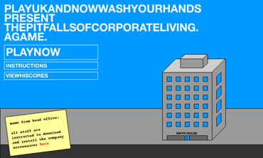 BASED ON THE CLASSIC 80'S ATARI GAME-'PITFALL' THIS CONTEMPORARY VERSION SETS YOU WITHIN A HORRIFYING OFFICE ENVIRONMENT. AVOID FILING CABINET DRAWERS, PLUMMETING SALES CHARTS, PICK UP INCENTIVE PACKAGES AND ESCAPE TO THE ROOF.